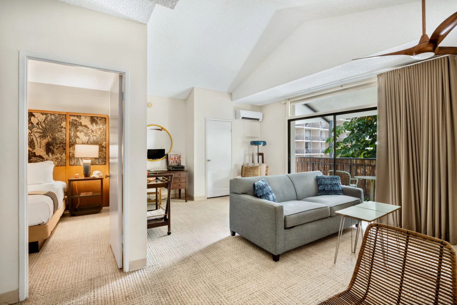 Immerse yourself in the essence of old Waikiki in our newly renovated one-bedroom suite, complete with a sofa sleeper in the spacious living area and 1 king bed in a separate bedroom. After a long day of adventuring, enjoy modern amenities such as a mini-fridge, microwave, Nespresso Machine, 40-inch LCD TV, in-room speakers, high speed WiFi and private bamboo lanai.