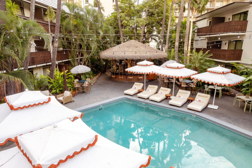 Surrounded by our rooms and lanais, our sundrenched pool is the heart of White Sands and the perfect spot to get social and hang out together. Wind down the day surrounded by swaying palms and tropical greenery. Meet in the morning for another great day in Waikiki.